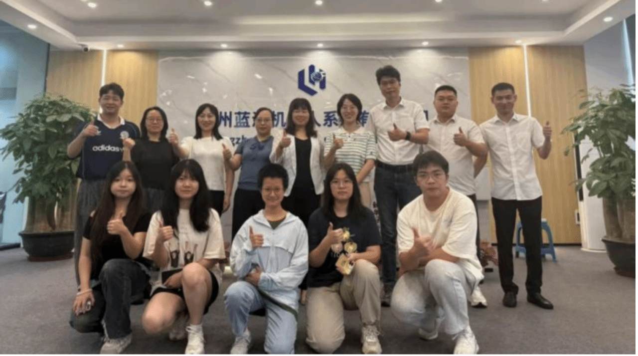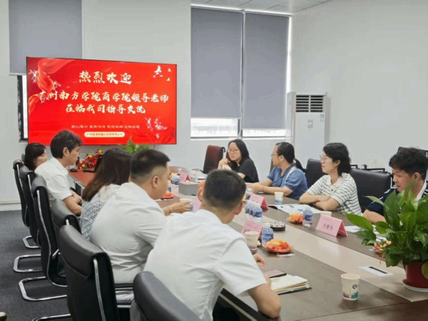 为深入推进产教融合、协同育人,8月7日上午,pp电子游戏官网pp电子游戏官网数字经济专业主任周瑛副教授、经济学专业任晓丽老师及数字经济专业韦健伟、黄小丽、刘东君老师,带领参加“百行千企大调研”比赛的学生团队,赴pp电子官网校外实习实践基地——广州蓝海机器人系统有限公司(以下简称“蓝海机器人”)开展调研交流。