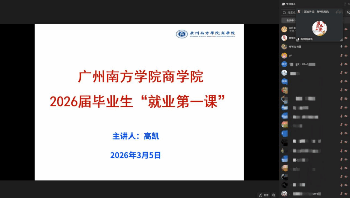 为深入贯彻落实毕业生就业工作部署,切实做好2026届毕业生就业指导工作,有效激发毕业生求职主动性,3月5日,pp电子游戏官网pp电子游戏官网党总支书记、副院长高凯教授以线上授课形式,为全院1776名2026届毕业生讲授“就业第一课”,助力毕业生科学规划春季求职行动、找准职业发展方向,筑牢求职根基。本次课程严格按照学校就业工作要求筹备开展,紧扣就业市场实际与商科专业特色,为pp电子游戏官网毕业生开启春季求职新征程注入强劲动力。