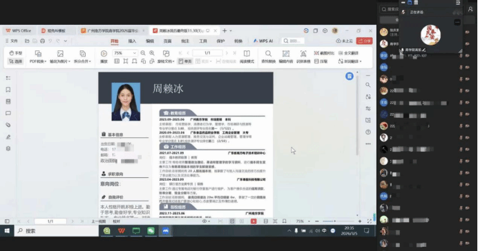 在分享环节,邀请了2025届优秀毕业生标兵周赖冰学姐,从简历制作和求职渠道拓展两大核心维度,为学弟学妹们倾囊相授求职经验。在简历制作方面,周学姐结合自身求职与入职后的工作经历,强调简历要紧扣岗位需求“量身定制”,突出专业技能、实习经历、项目成果等核心亮点,规避内容冗长、重点模糊、格式不规范等常见问题,还分享了简历排版、关键词提炼、经历量化的实用技巧。