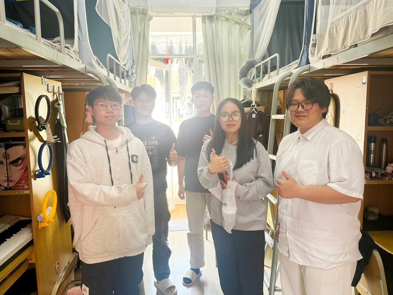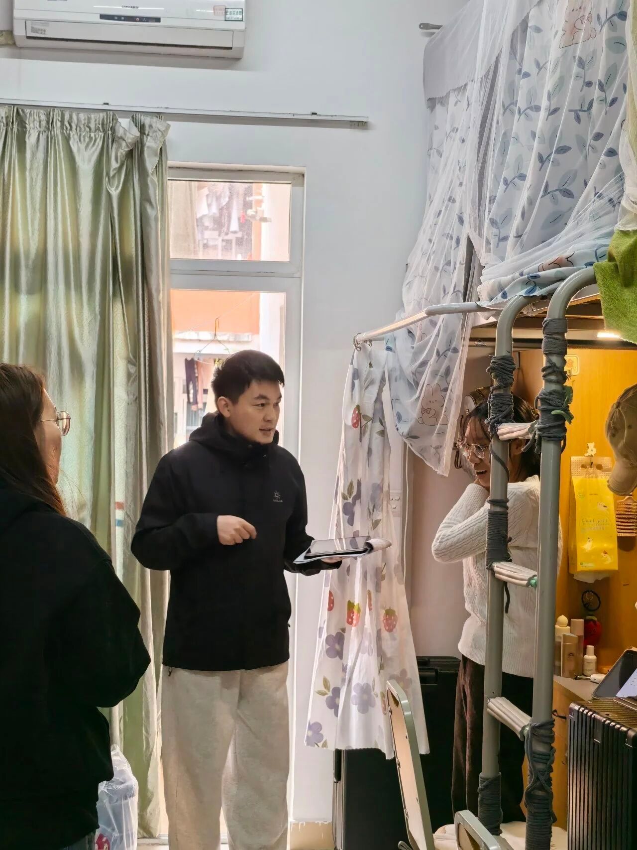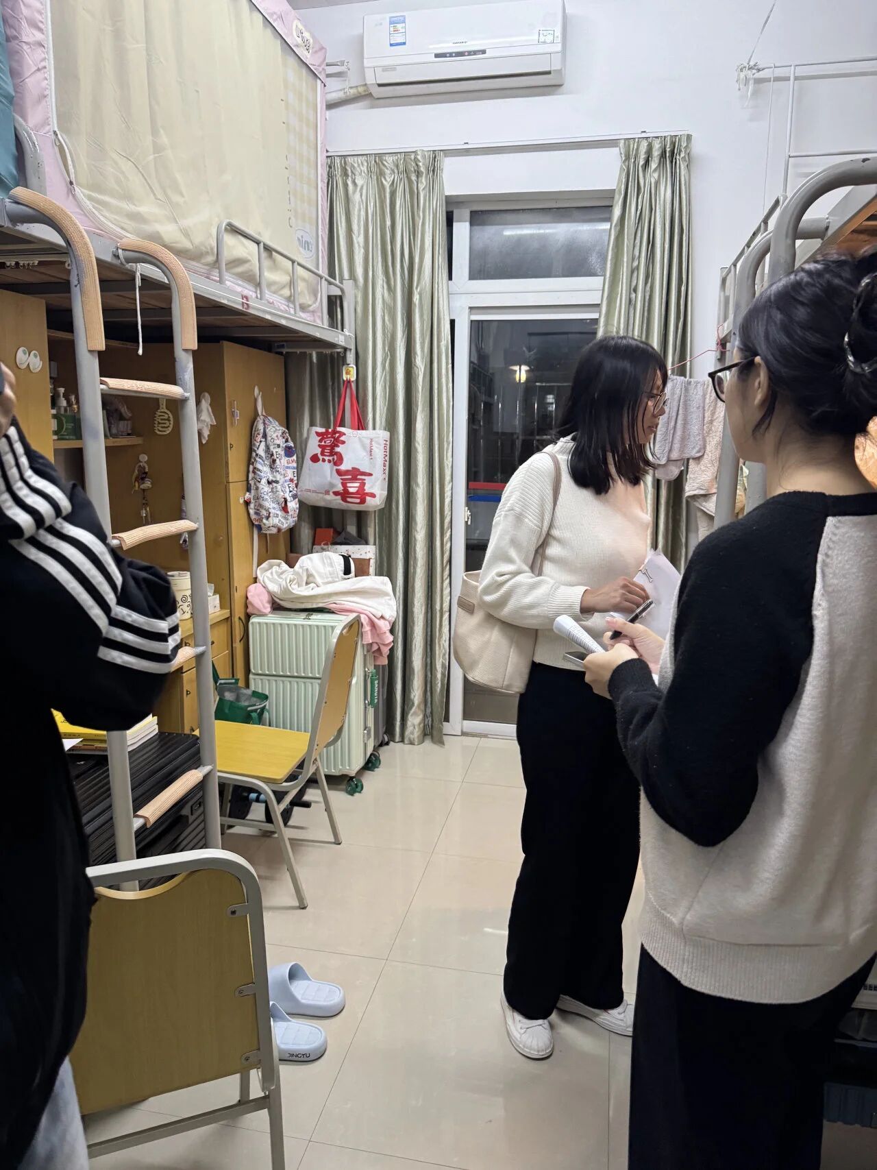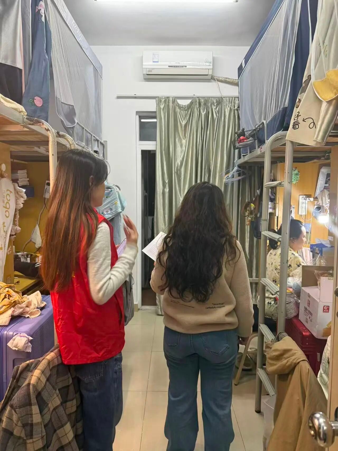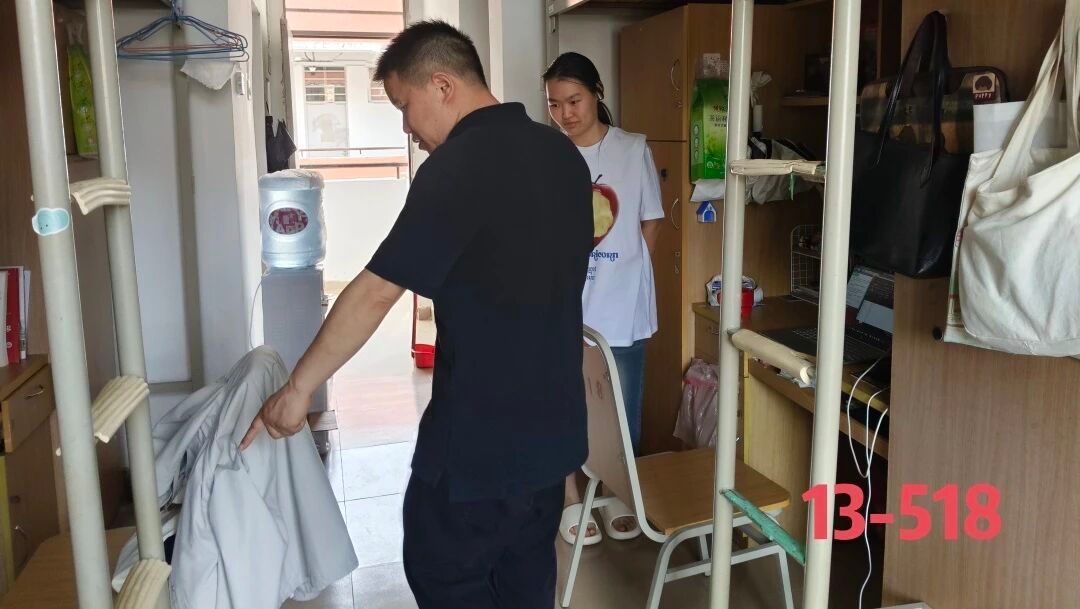 检查过程中,老师们细致核查宿舍环境卫生、物品摆放、安全用电等情况,同时与同学们亲切交流,了解大家的学习生活状态与思想动态,耐心讲解宿舍安全管理规定与文明宿舍创建要求,鼓励大家共同营造整洁有序、积极向上的宿舍氛围。