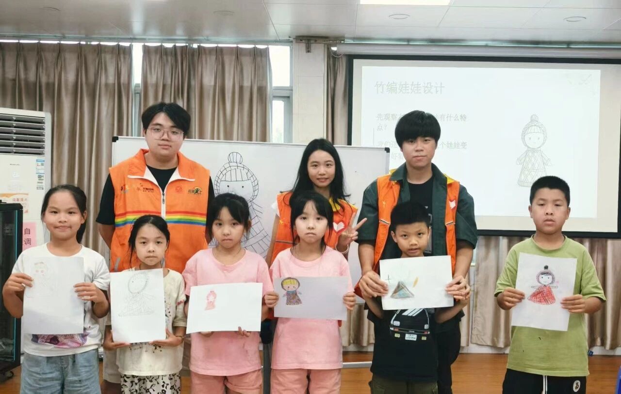 午后课堂切换至沉静与专注模式:竹编理论课上,小老师们详解竹篾特性与基础技法,孩子们专注聆听,不时好奇提问;小老师的绘画课上,颜料与画笔共舞,孩子们用色彩勾勒想象,将课堂乐趣与乡村景致融入画中,在动手与创想中收获满满。