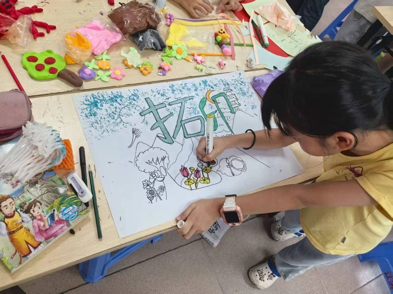 我们教他们画队徽