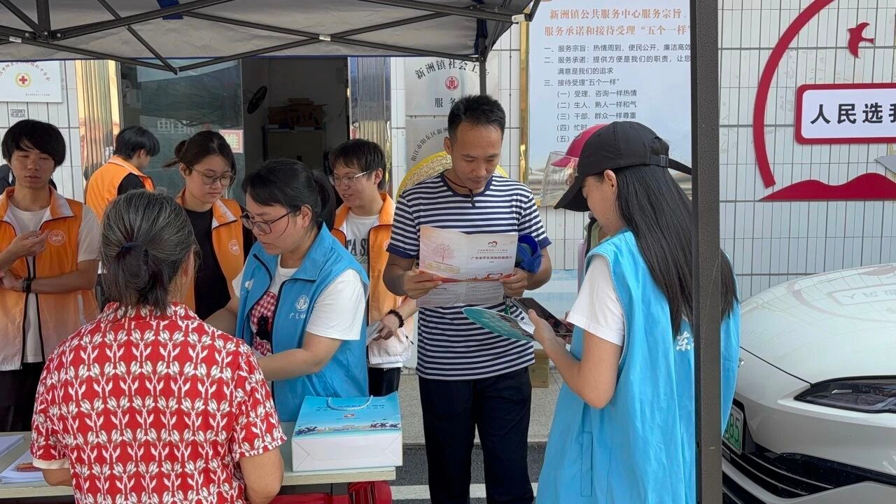 次日,团队在新洲镇人流密集区域设立宣传摊位,通过发放资料、案例讲解、一对一答疑等方式,向群众普及资助政策。活动现场,成员们耐心解答村民疑问,重点解读了义务教育阶段寄宿生生活费补助和高等教育生源地助学贷款等惠民政策。