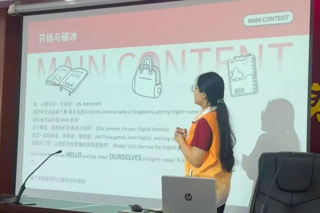 随后,小老师通过PPT展示,示范了如何用英语进行自我介绍。孩子们不仅学会了正确的发音,还掌握了如何用英语进行简单的交流。孩子们分组练习并上台展示,课堂氛围活跃。课堂的最后,孩子们通过英文来儿歌放松身心,同时巩固所学知识。