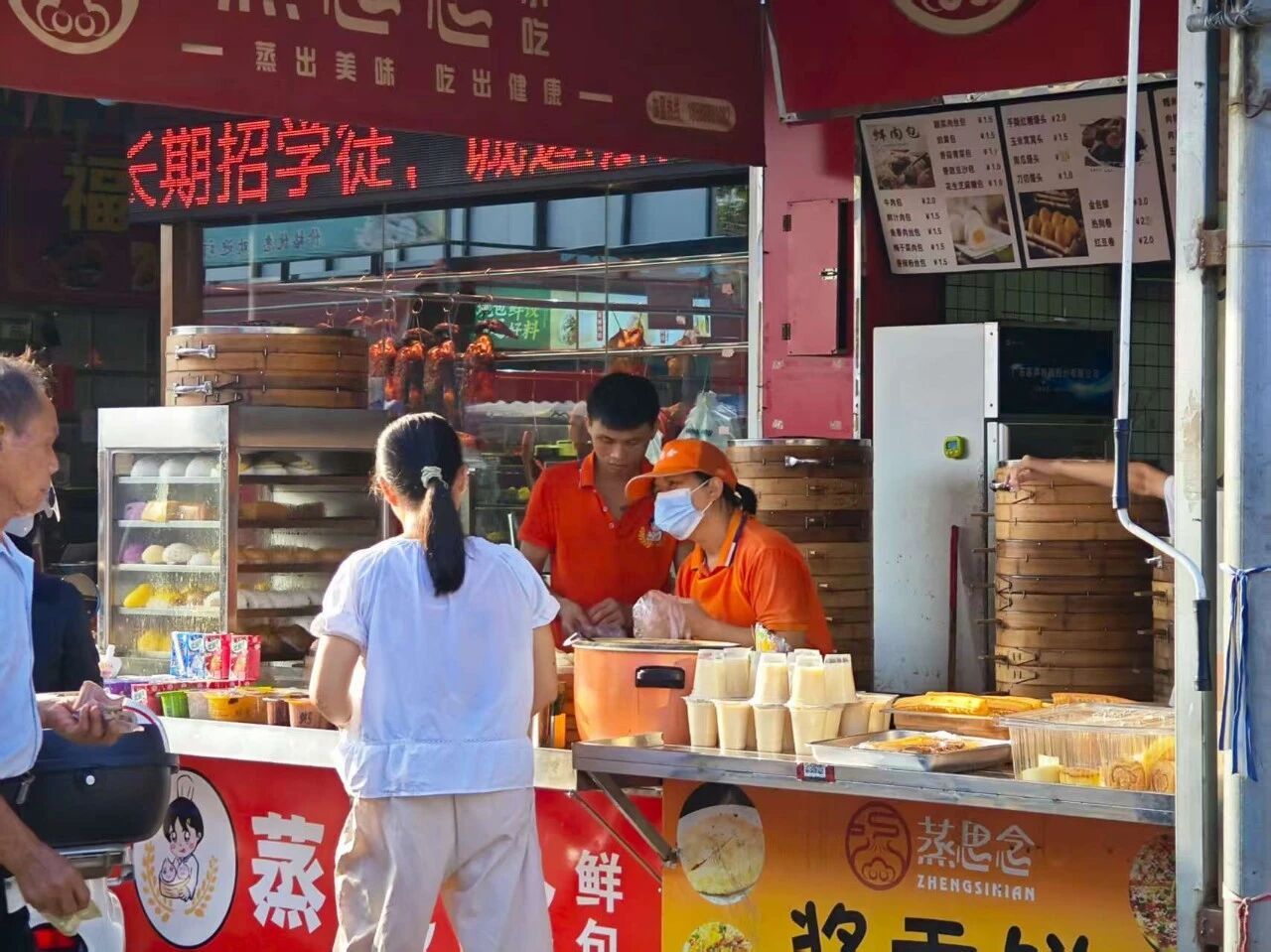 7月8日,天刚破晓,我们已整装集合,朝着杨和镇“菜集·人和市场”出发。搬运货物的商贩扛着沉甸甸的蔬菜筐穿梭往来;卸货的三轮车旁,捆扎整齐的青菜、水灵的瓜果堆成山,清新的气息扑面而来。早餐店的阿姨远远瞧见我们,就笑着招呼“靓仔靓女来啦”,手里的活计没停,却总不忘多问一句“要不要先喝碗热豆浆”我们举起镜头,记录下这一切,汗水浸湿的衣衫、此起彼伏的吆喝、递来递往的零钱,还有那份藏在烟火里的热忱与鲜活。