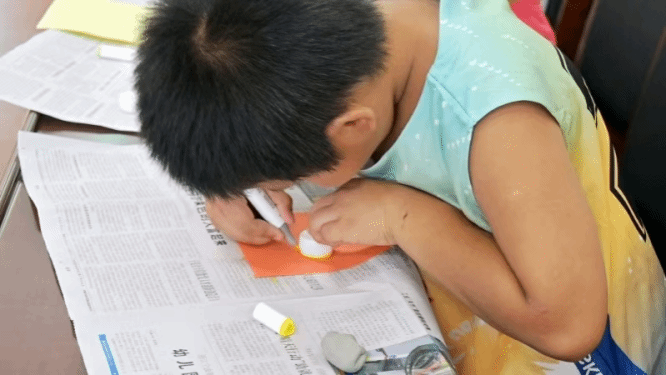 废旧物料的创意重构:环保理念的实践浸润。手工课程以 “环保手工制作” 为主题,吴泽思、李丽琼两位小老师构建 “理论 — 实践 — 反思” 的教学闭环。通过 “废旧物品价值” 的讨论,让 “循环利用” 的环保理念悄然扎根;实践环节提供废旧纸盒、报纸、瓶盖等材料,学生以小组为单位完成 “功能重构”—— 纸盒变 “机械人偶”、瓶盖拼 “生态图景”、报纸卷 “立体雕塑”。作品展示时的 “理念分享” 环节,孩子们阐述 “废旧吸管作机械臂的逻辑”“报纸褶皱模拟山峦肌理的巧思”,让环保认知从概念落到行动。看着孩子们用平凡物料创造出的惊喜,能真切感受到创意的无限可能,环保意识就在这一针一线、一粘一贴中自然生长。