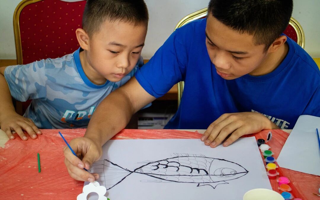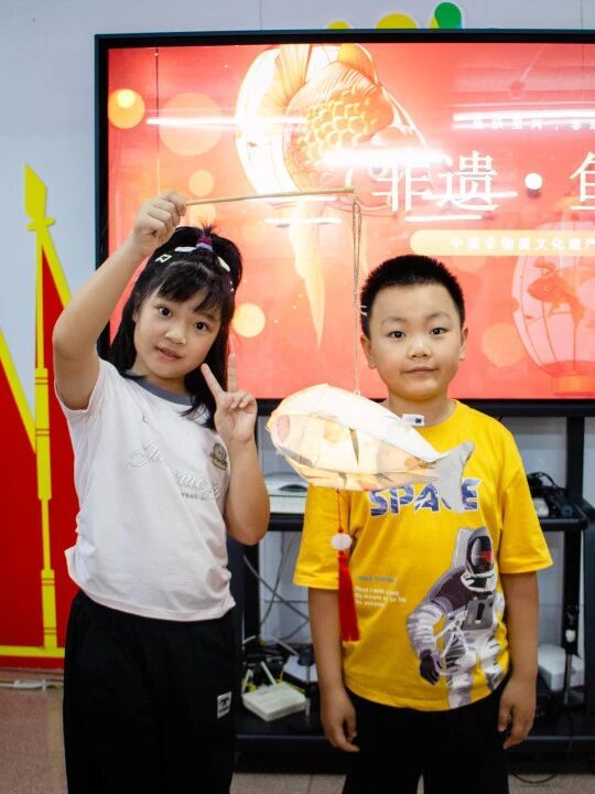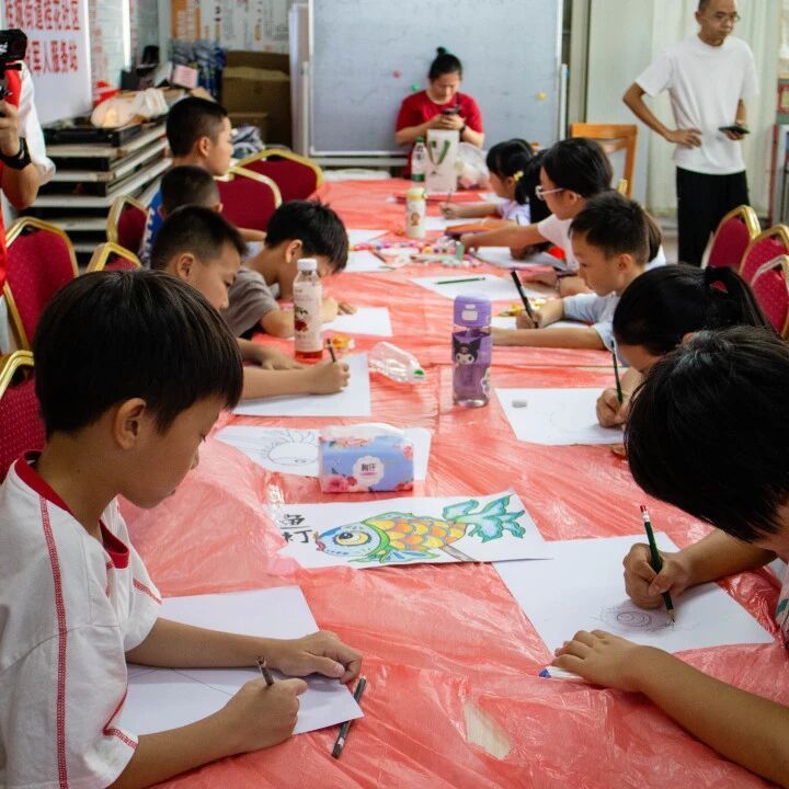 做完手工鱼灯,我们邀请每个孩子拿起画笔,在卡片上画出心中的鱼灯。不必拘泥于模样,让想象随心流淌,每一笔都是独属童年的奇思。这些稚嫩却鲜活的画,是孩子们与非遗的对话,也是传统在心底萌芽的模样,让鱼灯的光,照进更多天马行空的梦里