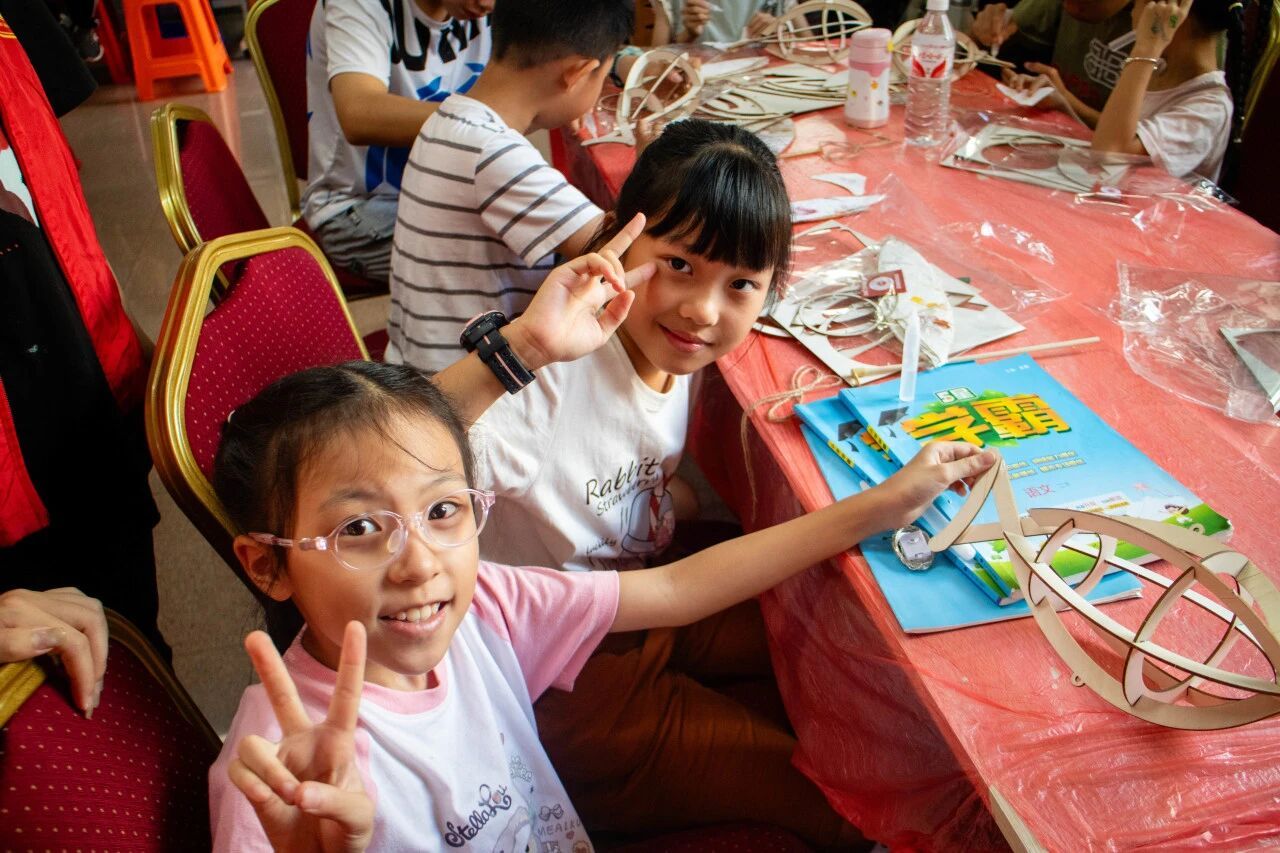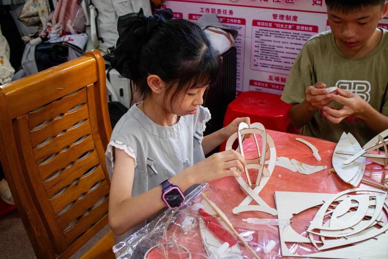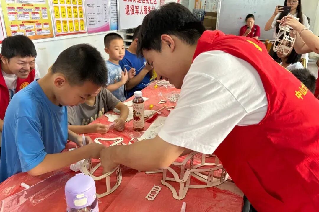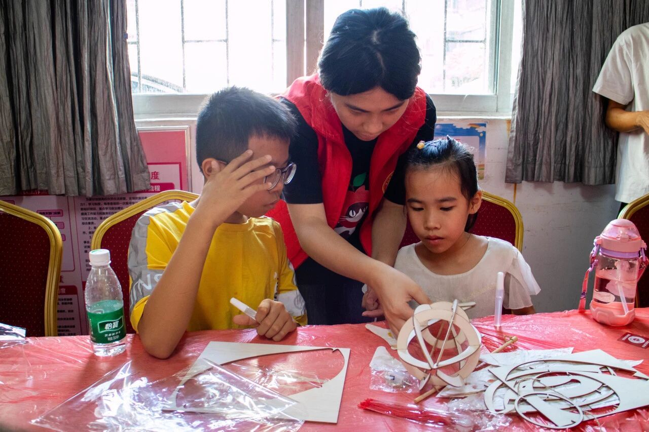 在跃跃欲试的氛围中,突击队员们化身耐心导师,带领孩子们开启创作之旅。拼竹为骨,裁纸作鳞,点睛传神,每一步都浸润着手艺的温度与智慧。队员们俯身穿梭于孩子们之间,手把手指导骨架定型,轻声解答裱糊难题。