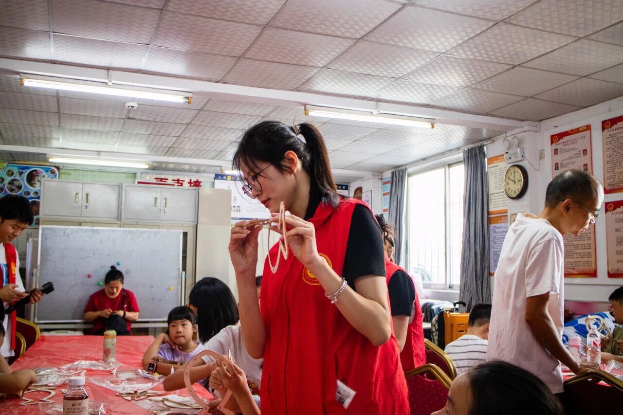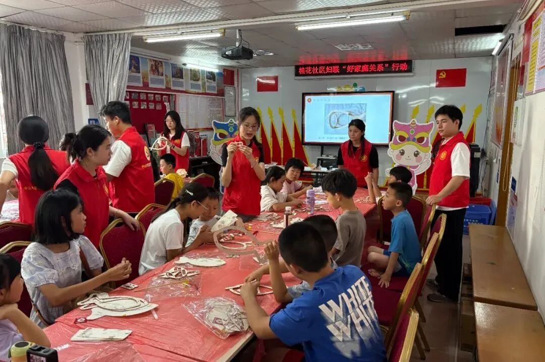 7月7日,“颐脉相承”突击队步履不停,走进桂花社区开展“鱼跃桂花,非遗传承”DIY鱼灯手工课。孩子们在一折一糊间读懂鱼灯里的传统故事,并将一盏盏承载祝福的鱼灯悬于社区凉亭,光影流转间,恰似高校智慧与社区烟火的温柔相拥,绘就出一幅双向赋能的动人画卷。