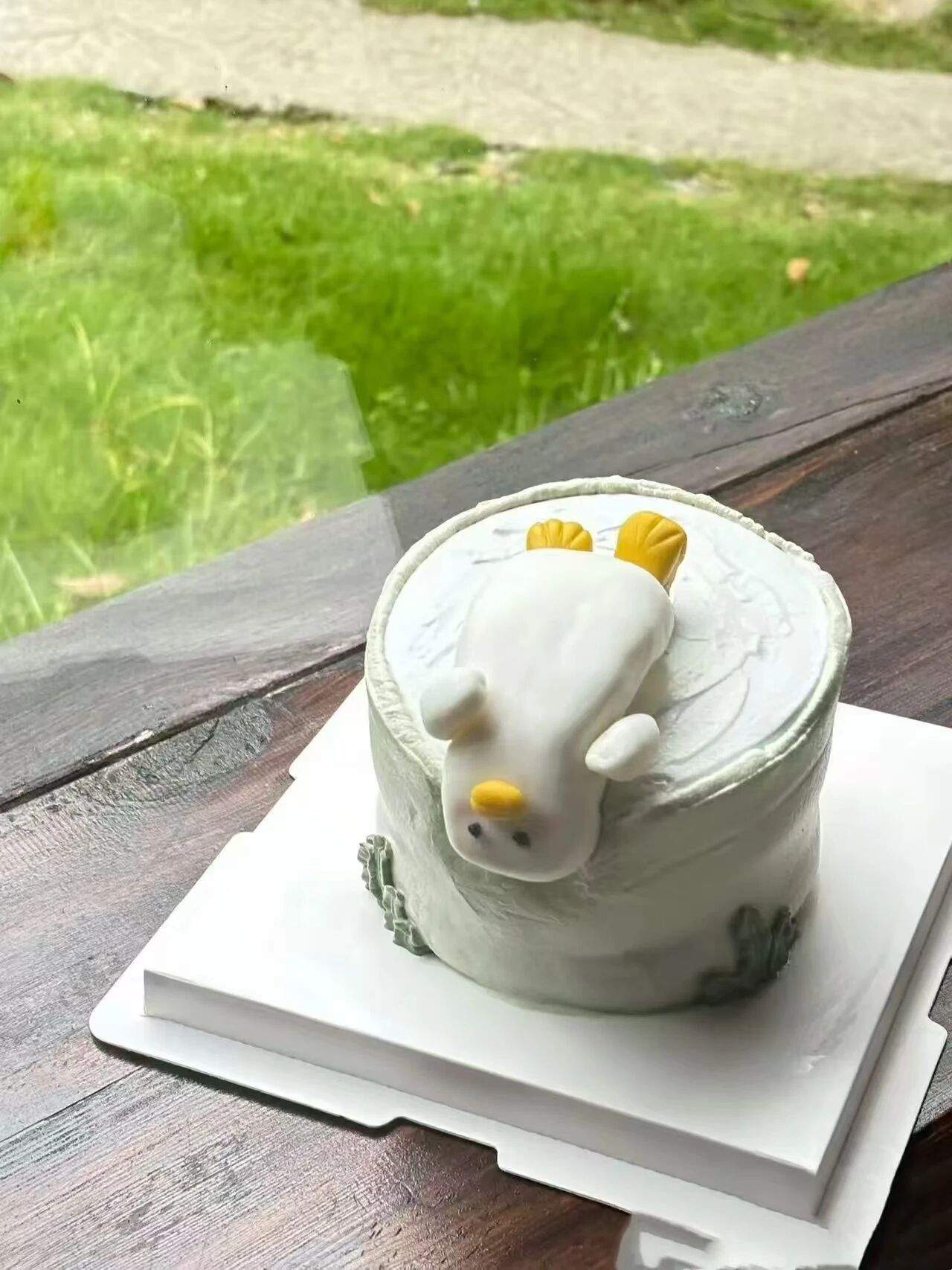 不仅如此,餐厅里喷香Q弹的蛋糕端上来时,雪白的蛋糕上面抹着奶油鸭子,这是斑斓餐厅的文创特色,轻咬一口,甜而不腻,像是将盛夏放在舌尖上。