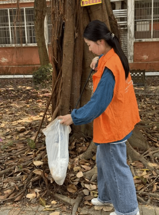 感谢每一位身披橙甲、躬身前行的志愿者,是你们让校园更洁净,让绿意更盎然。也愿每一位同学都能将环保意识融入日常,从点滴做起,让垃圾分类成为习惯,让文明之风吹遍校园的每一个角落。青山绿水,由我守护;洁净校园,你我共建。