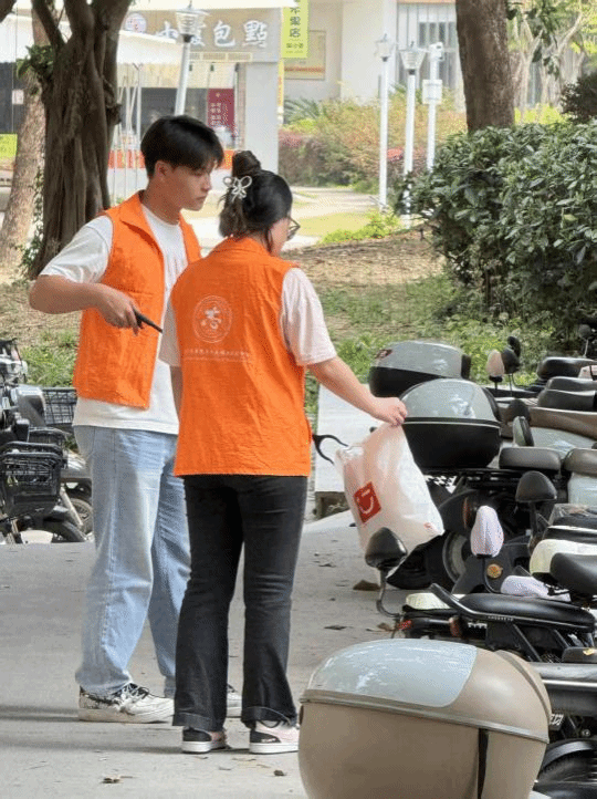 阳光透过枝叶,在橙马甲上映出斑驳的光影,也照亮了志愿者们认真的脸庞。