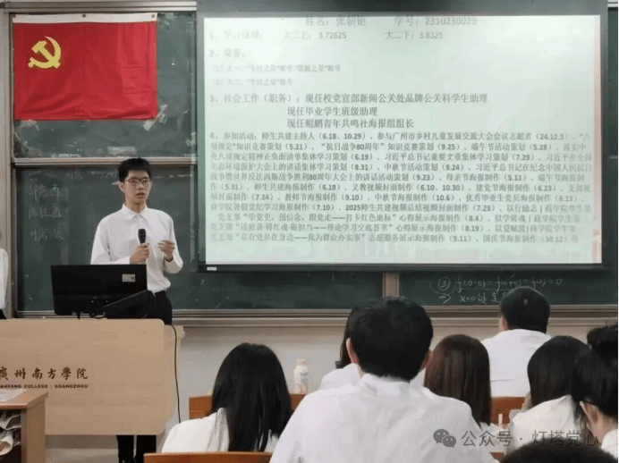 转正议程圆满结束后,陆正祥书记以“深入学习贯彻党的二十届四中全会精神”为主题,为全体党员讲授专题党课。他强调,新时代学生党员要把学习贯彻全会精神与自身成长发展紧密结合,既要筑牢思想根基,也要立足校园阵地,在学习科研中攻坚克难,在志愿服务中践行宗旨,以实际行动诠释共产党员的责任与担当。党课内容深入浅出、内涵丰富,让全体党员深受启发与教育,进一步凝聚了党支部共识、强化了使命担当。