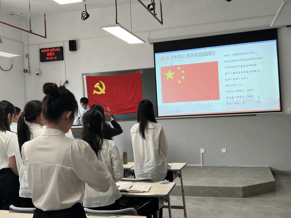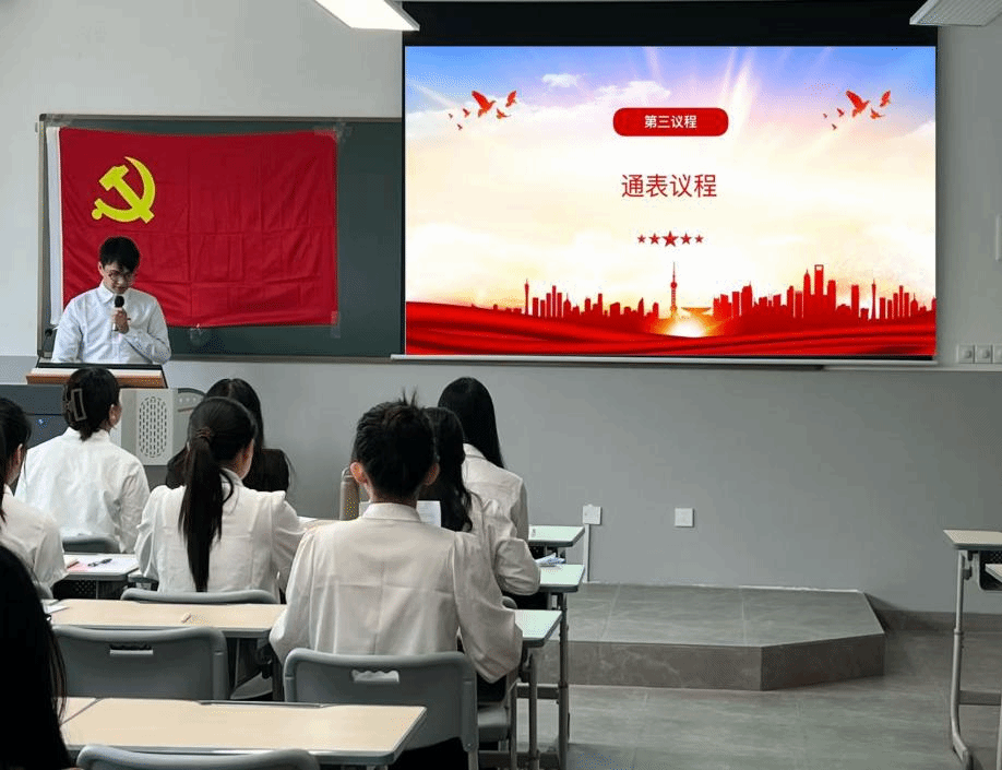 会议在激昂的国歌声中拉开帷幕。代理纪检委员陈思仪首先通报了大会考勤情况,明确应到党员人数、实到党员人数及有表决权党员人数,确认到会人数符合《中国共产党章程》《中国共产党发展党员工作细则》规定,会议有效。