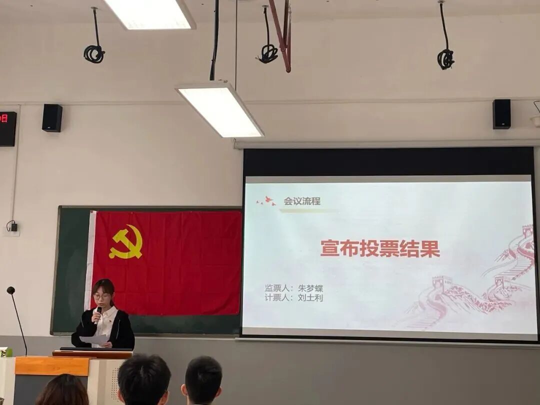 组织委员符燕雅同志代表党支部委员发表考察意见后,表决环节严格采用无记名投票方式进行。由刘土利同志负责票数统计,朱梦蝶同志现场宣读投票结果。经统计,本次投票有效,全体与会正式党员一致同意麦蕾同志按期转为中共正式党员。