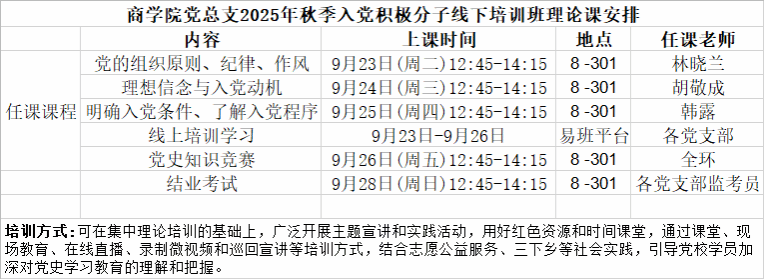 2025年秋季入党积极分子学习时间安排如下,请各位入党积极分子安排好时间,准时参加课程及考试。