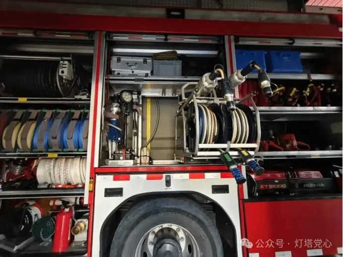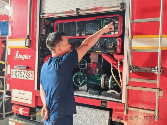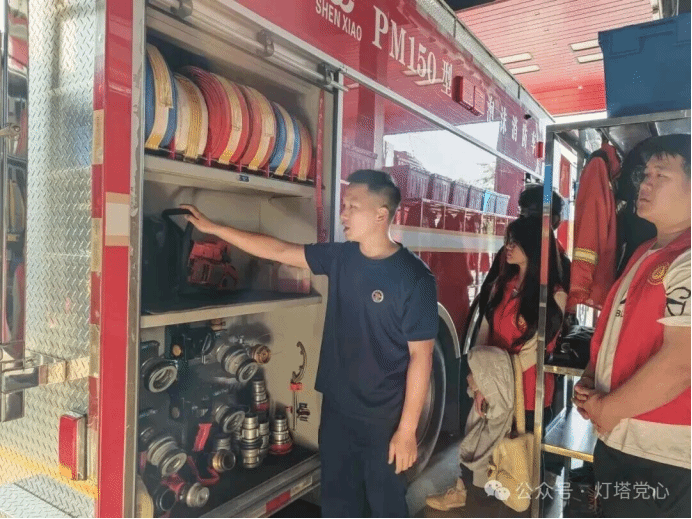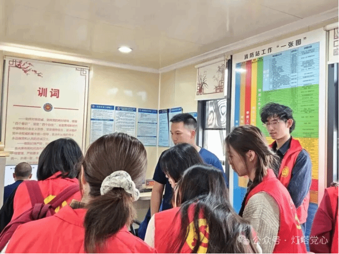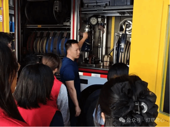 随后,党支部成员在消防员的引导下,有序参观了消防站工作区与生活区域。在生活区内,整洁的宿舍环境与规范统一的内务管理,展现了消防救援队伍严谨的作风与高度的纪律性。消防员结合日常出警实例,介绍了常见火灾类型与处置要点,并重点讲解了集体住宿场所的火灾预防措施与应急疏散要求。通过实地参观与交流,党支部成员对消防救援人员恪尽职守、无私奉献的职业精神有了更为直观而深刻的认识。