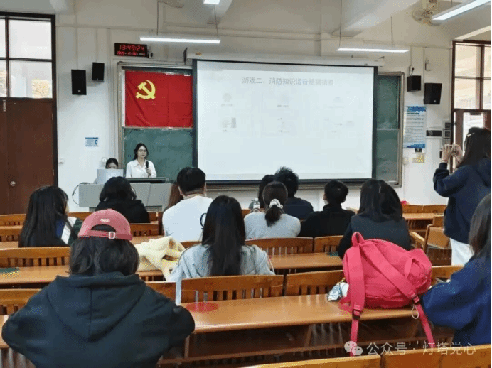 理论学习结束后,会议进入实践体验环节。为巩固学习成效,活动组织方围绕消防安全主题设置了专项互动内容。其中,“安全隐患排查”环节要求参与者在模拟场景中快速识别潜在风险点,以此提升安全风险辨识能力;“消防知识竞答”环节则采用创新形式,引导参与者在思考中加深对消防器材使用、应急流程等关键知识的理解。活动现场氛围严肃而专注,体现出同学们对安全教育的高度重视。通过具象化、互动性的学习方式,与会人员进一步强化了消防安全意识,提升了应对突发情况的实践能力。