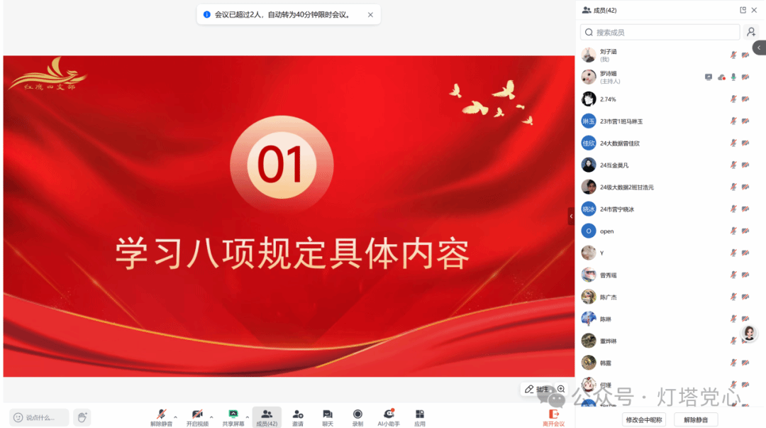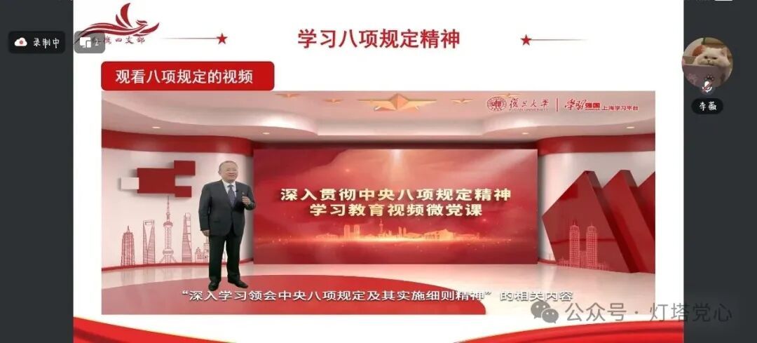 “贯彻中央八项规定精神,强化党员担当,是我们党的优良传统和作风。”习近平总书记在多个场合强调中央八项规定精神的重要性,这不仅是对党员干部的要求,更是对全体社会成员的号召。7月15日,pp电子游戏官网学生第四党支部通过腾讯会议平台举办了一场以“贯彻中央八项规定,强化学生党员自我检视与提升”为主题的学习会。