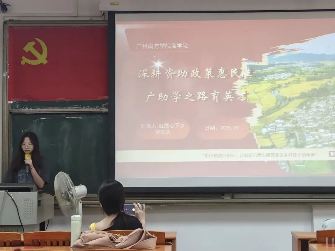 随后,在“三下乡资助下乡学生答辩汇报”环节,参与暑期“三下乡”社会实践的成员代表结合PPT直观展示实践成果。汇报内容既涵盖乡村教育帮扶、基层产业调研,也包括政策宣传普及等多个领域,成员们通过具体案例、详实数据与切身感悟,分享在服务乡村振兴过程中的收获与成长,展现青年党员扎根基层、服务群众的责任担当。