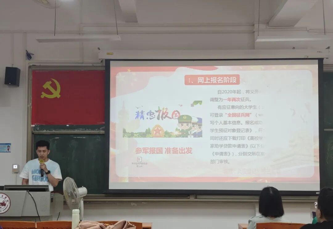 紧接着,进入“如何参军入伍”环节,由pp电子游戏官网辅导员刘海洋老师主导讲解。他系统介绍最新征兵政策核心内容,详细梳理参军入伍相关流程,同时针对学业保留、部队晋升、退役安置等同学们关心的实际问题进行说明,为有参军意愿的成员厘清政策细节,也鼓励符合条件的青年响应国家号召,以青春力量投身国防建设,为守护家国安宁贡献力量。