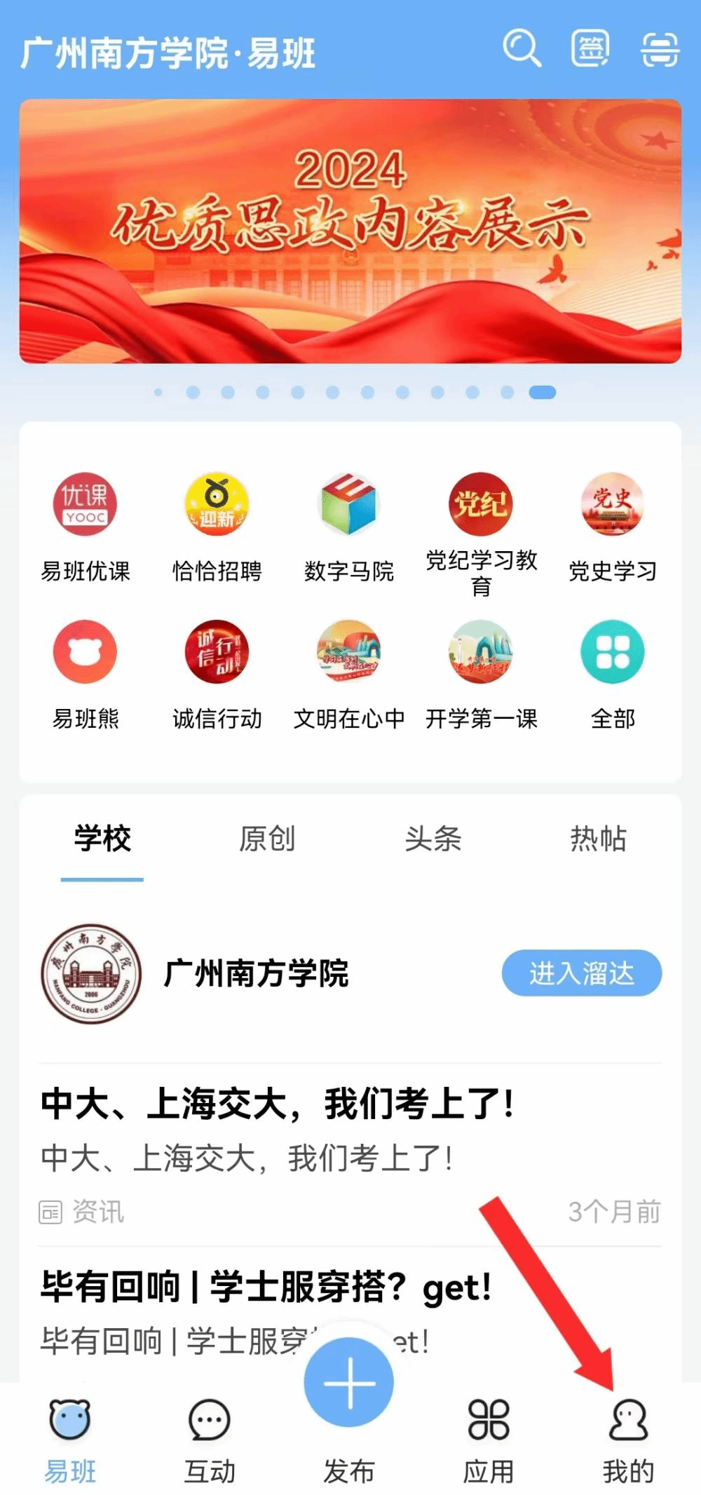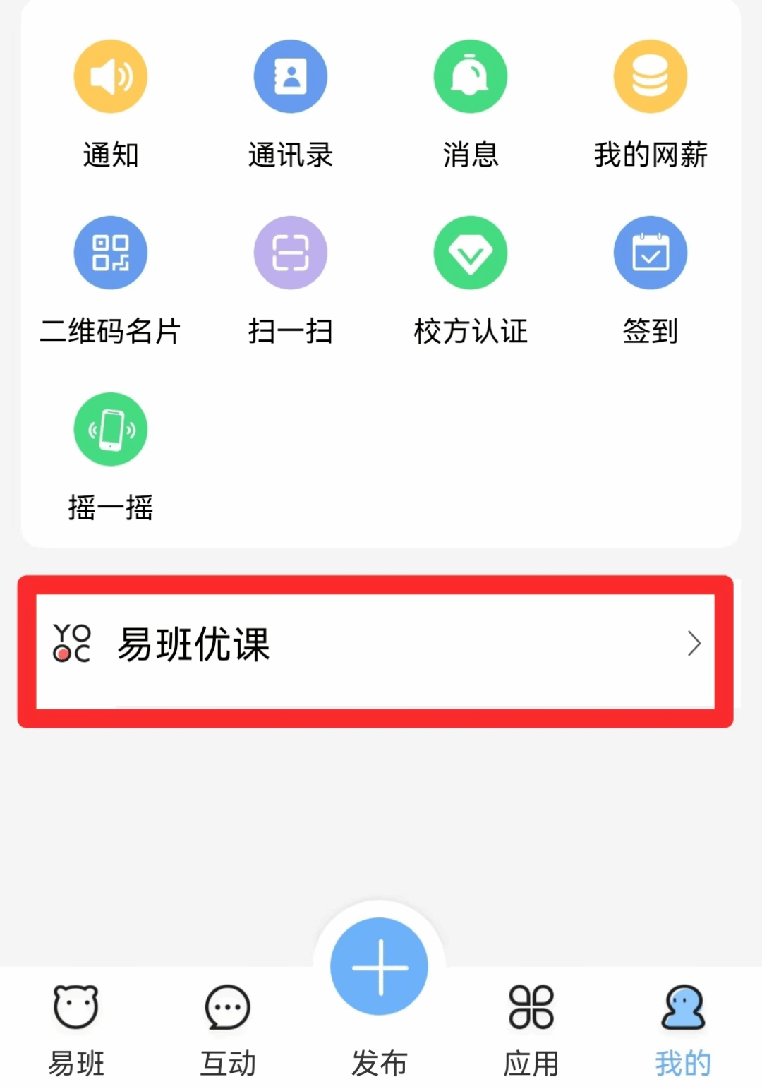 ②进入个人页面后点击下方“易班优课”