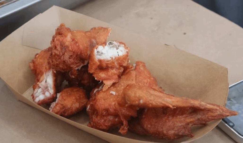 日头正盛时,腐乳的咸香混着油炸的焦香,在店门口绕成一团暖雾。“源自揭腐乳鸡翅” 的铁架上,红亮的鸡翅正滋滋冒油,鸡翅外酥里嫩,咬开脆壳后肉汁在舌尖炸开,鲜与香瞬间铺满整个口腔。我们被这美味吸引,吃的忘乎所以。老板从制作间走出来热情询问我们口感如何,我们纷纷竖起大拇指,老板骄傲地笑起来,对着镜头讲起往事。