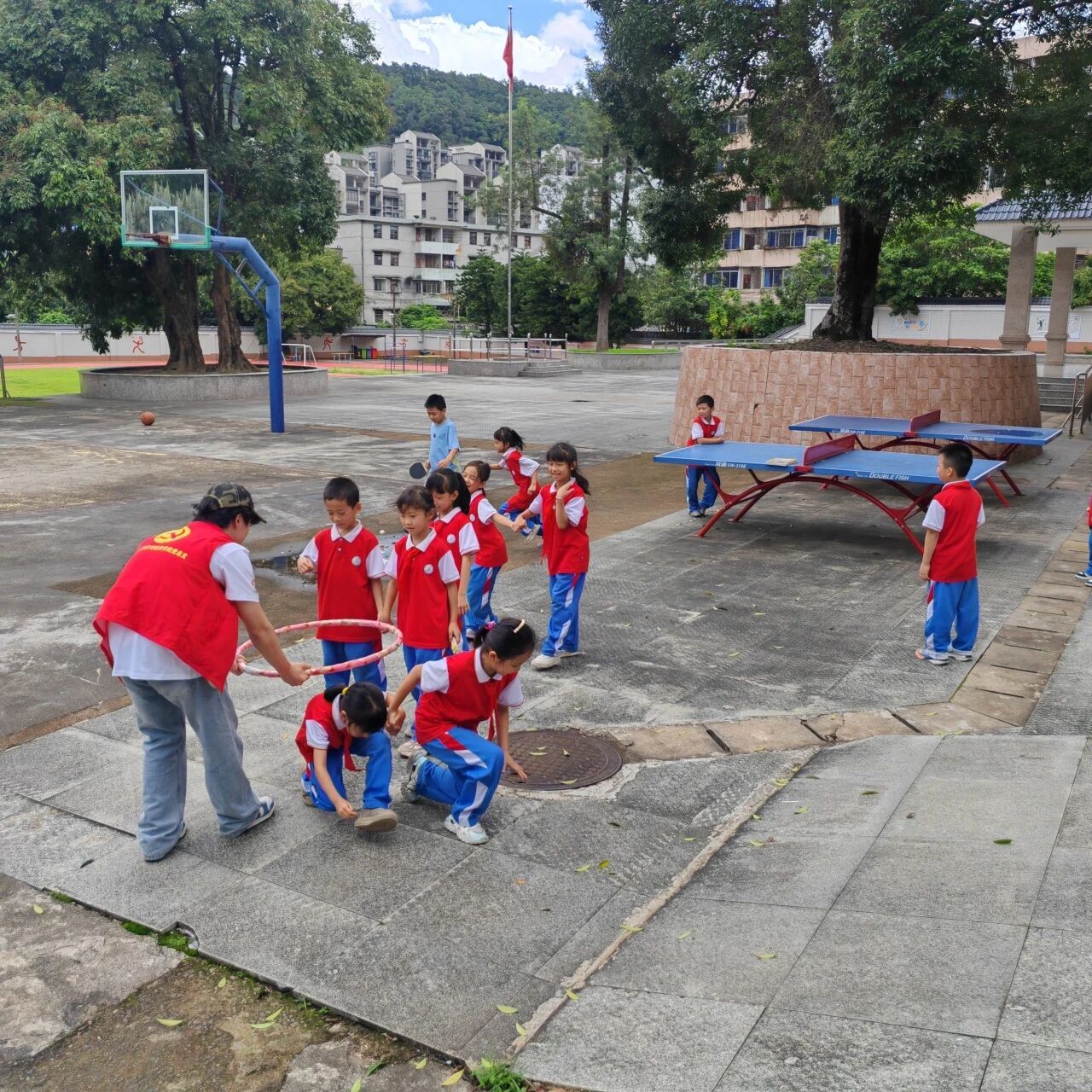 7月6日,体育课堂上,欢声笑语此起彼伏。团队成员设计“手牵手传呼啦圈”游戏,同学们围成一圈,齐心协力将呼啦圈从一人传递至另一人,过程中考验默契与协作。游戏不仅强健体魄、锤炼意志,更培养了团队精神与集体意识。同学们在奔跑与配合中释放活力,在信任与合作中收获成长,操场上洋溢着青春的气息与团结的力量。