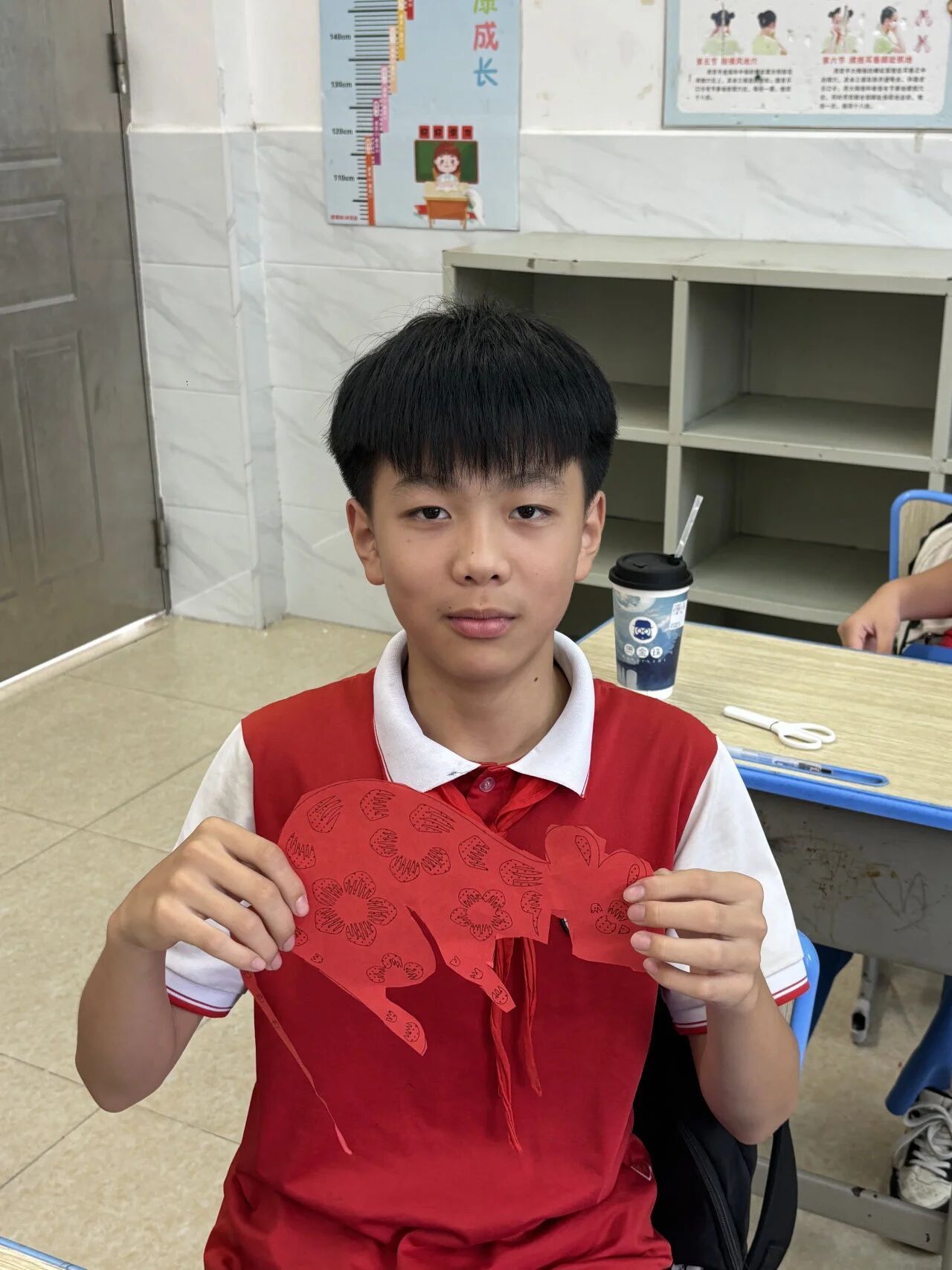 7月5日,在传统文化课堂上,漆扇与剪纸技艺成为同学们眼中的“魔法”。小老师们讲诉漆艺的历史渊源与制作技法,同学们聚精会神,随后亲手浸染漆扇,色彩斑斓、图案各异,创作出不同图案的漆扇作品。剪纸课堂同样精彩纷呈,红纸翻飞之间,窗花、生肖等图案跃然纸上,同学们在剪刀的起落中感受非遗之美,体悟文化之根,激发内心深处对中华优秀传统文化的认同与自豪。