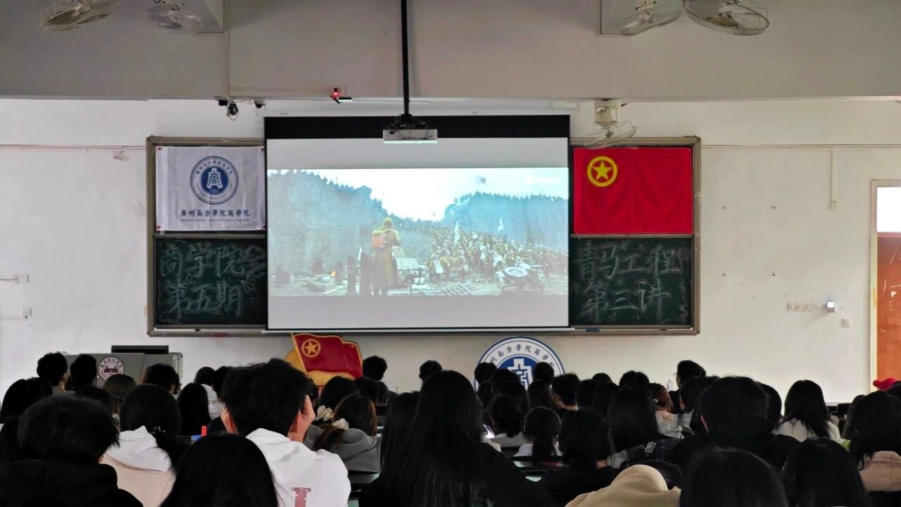 分享结束后,全体学员齐唱校歌,悠扬的旋律凝聚着校园情怀与青春担当。伴随后,“青马工程第五期第三讲圆满结束”的宣告为本次活动画上句号。整场活动通过影像叙事与思想交流,将厚重的历史教育融入生动的思想引领,不仅带领学员们重温民族记忆,更筑牢了铭记历史、团结奋进、奉献担当的信念根基。一部深刻影片,是一次跨越时空的精神对话;一场真诚分享,亦是一次直抵人心的集体共鸣。