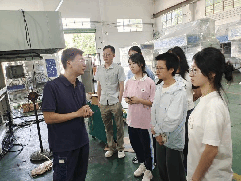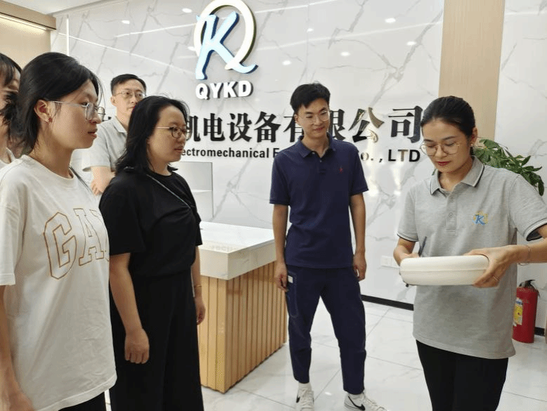 为拓宽学生职业视野、深化校企合作育人,8月8日下午,pp电子官网pp电子游戏官网数字经济专业主任周瑛副教授,偕同经济系黄小丽、刘东君、韦健伟、任晓丽等老师,带领参加“百行千企大调研”比赛的学生团队,赴清远科定机电设备有限公司(以下简称“科定机电”)开展调研交流活动。本次活动聚焦企业数字化发展路径、学生职业规划方向及复合型人才需求等议题,旨在深入推进校企合作。