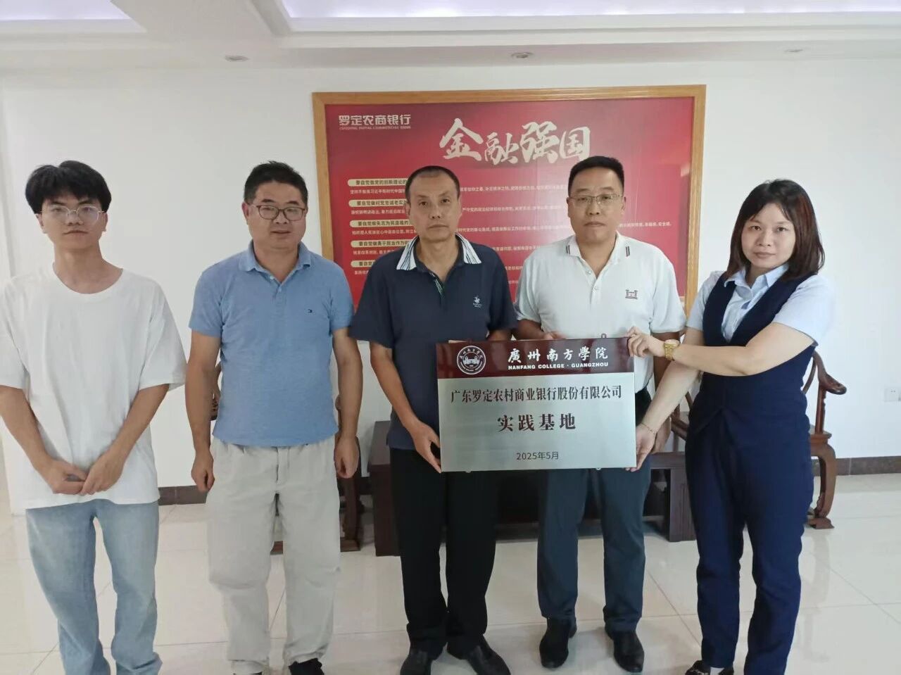 为进一步加强校企合作,深化产教融合,为金融专业学生搭建更优质的实践平台,2025 年9月4日上午,pp电子官网金融系老师杨欣、黄晓东和2023级金融学专业学生吴沃林一起赴广东省罗定农商银行走访交流,受到该银行党委书记兼董事长陈志刚和人力资源部朱婷总经理的热情接待,并顺利举行了实习基地揭牌仪式。
