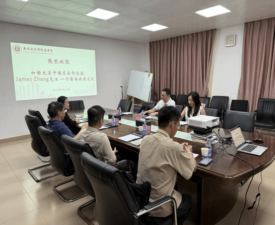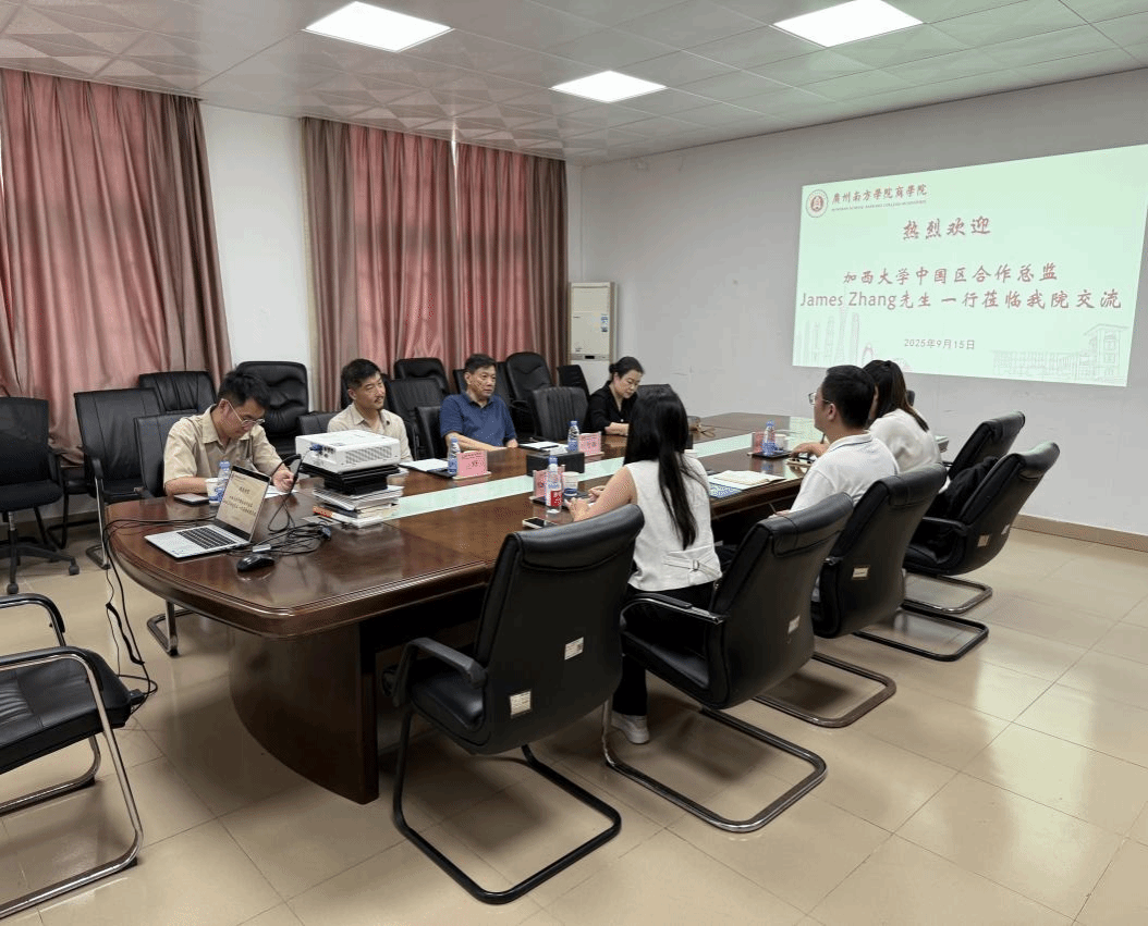 2025年9月15日,加西大学中国区合作总监James Zhang先生率代表团参访pp电子官网,双方就合作办学项目进行了深入研讨。pp电子官网院长叶龙森教授、副院长张玉冰教授及国际教育中心岳峰老师出席了本次座谈。
