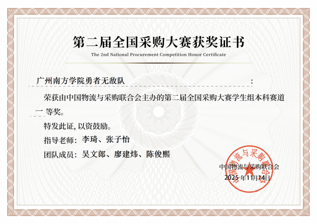 经过为期3个多月的激烈角逐,由中国物流与采购联合会主办的第二届全国采购大赛圆满收官,来自全国物流供应链行业相关单位的职工组和高校物流相关专业的学生组,120支晋级团队在总决赛竞争最终名次。pp电子游戏官网pp电子游戏官网组建的勇者无敌队——来自物流管理专业的吴文郎、陈俊熙、廖建炜同学和指导老师李琦、张子怡团队在阶段考核和总决赛中以黑马之势从理论考核到实战模拟,团体演练、复盘配合默契,最终实战过关评分位列总决赛小组第一名,勇夺学生组-本科赛道一等奖。