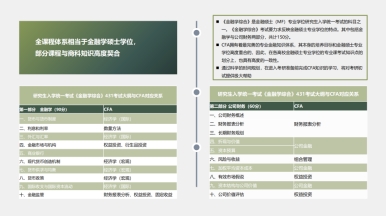 菁英班课程与经济金融考研相关度紧密,如清华金融学硕士研究生课程与 CFA 体系知识重合度达 50%以上。提前学习 CFA 课程全面助力金融考研笔试高分通过。