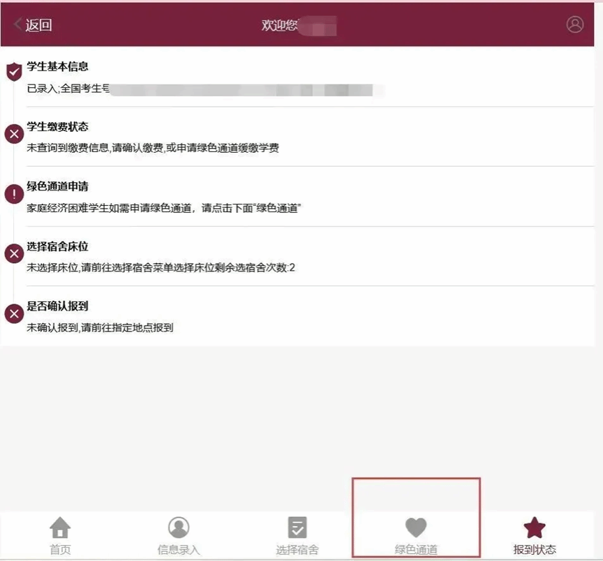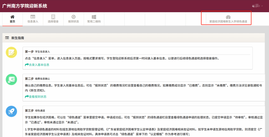 新生“绿色通道”申请全程在迎新系统完成,电脑以及手机都可以操作。