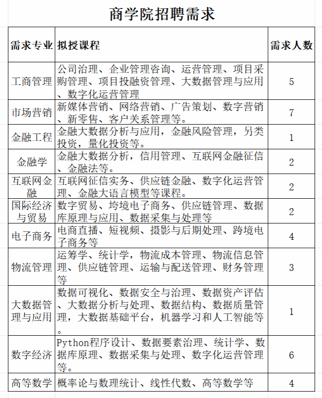 学院共设有13个专业:电子商务、经济学、国际经济与贸易、旅游管理、金融工程、国际商务、金融学、物流管理、工商管理、市场营销、互联网金融、数字经济、大数据应用与管理,在全国应用型大学本科专业排名中全部处于顶尖或一流水平。