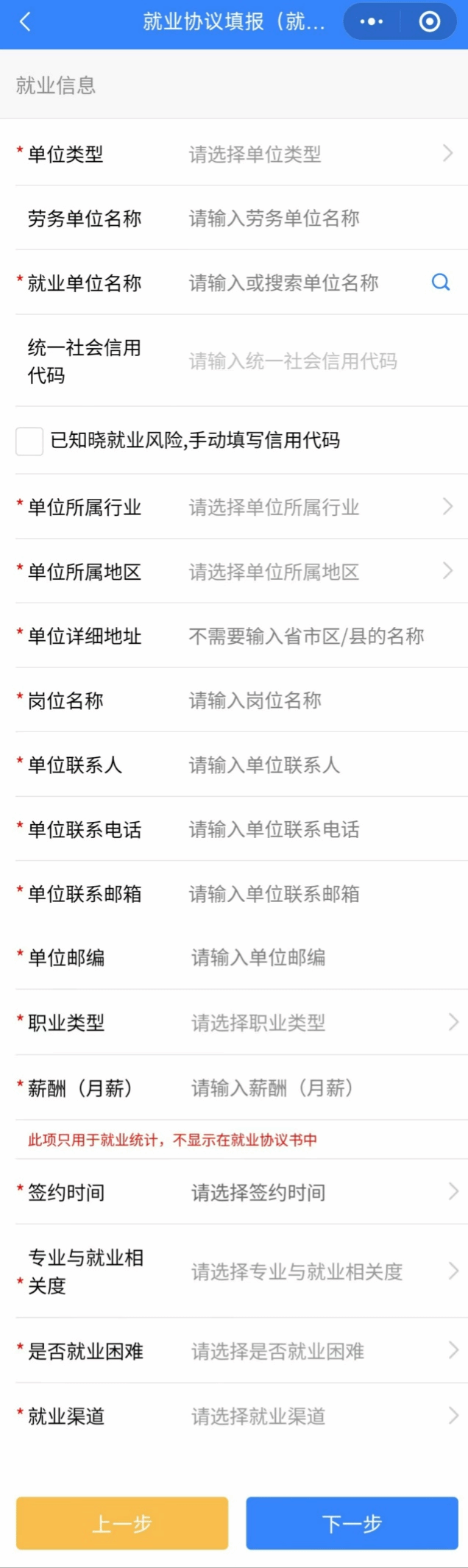 (四)填报就业单位信息