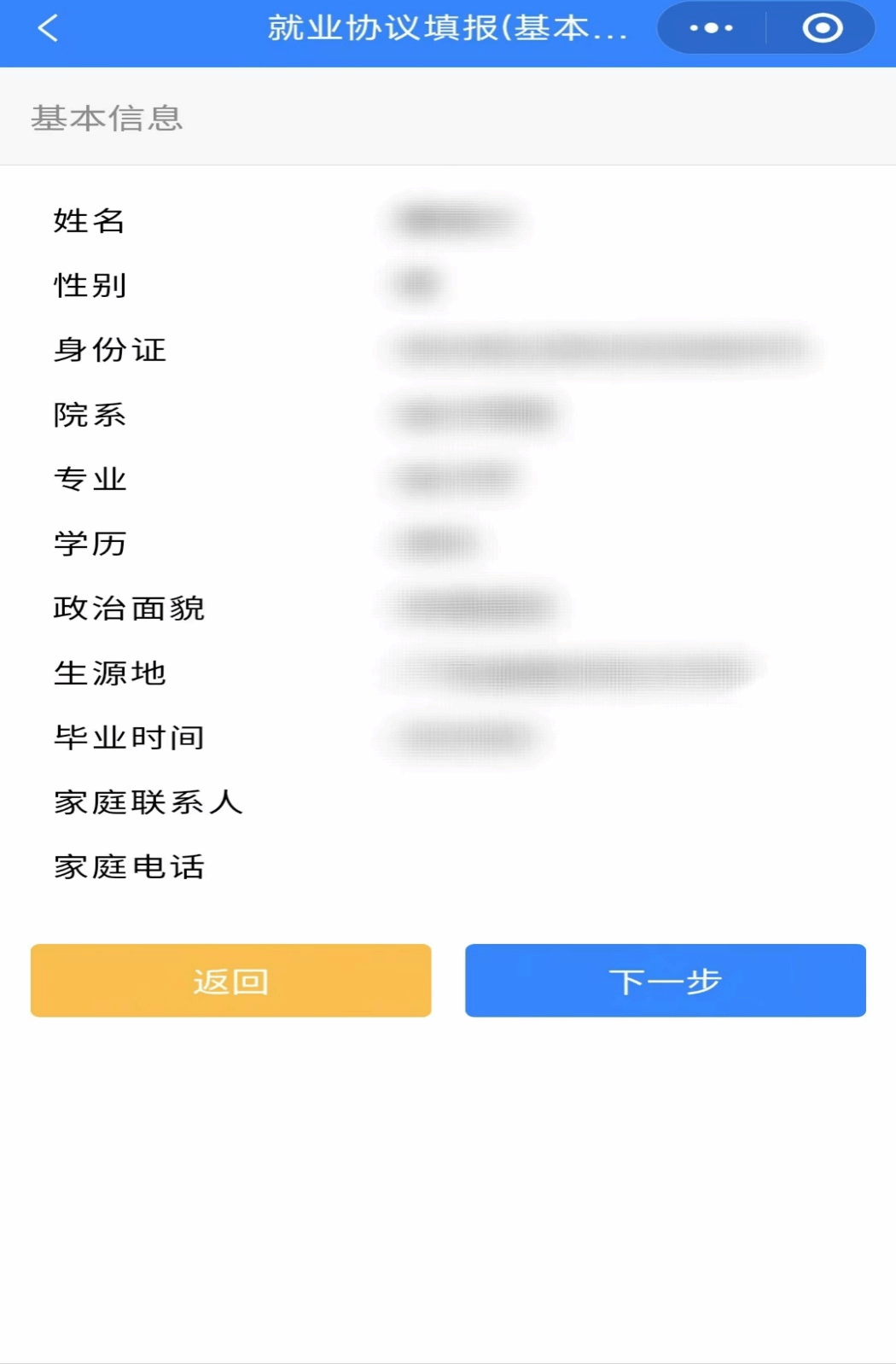 确认全部信息,进行签名确认。如有错误可点击“返回”到对应步骤中修改。确认无误后提交即完成就业协议书的申请。一旦学校审核后,毕业生和院校无法再修改信息,如需修改,请学生本人联系单位直接审核不通过退回学生直接修改。